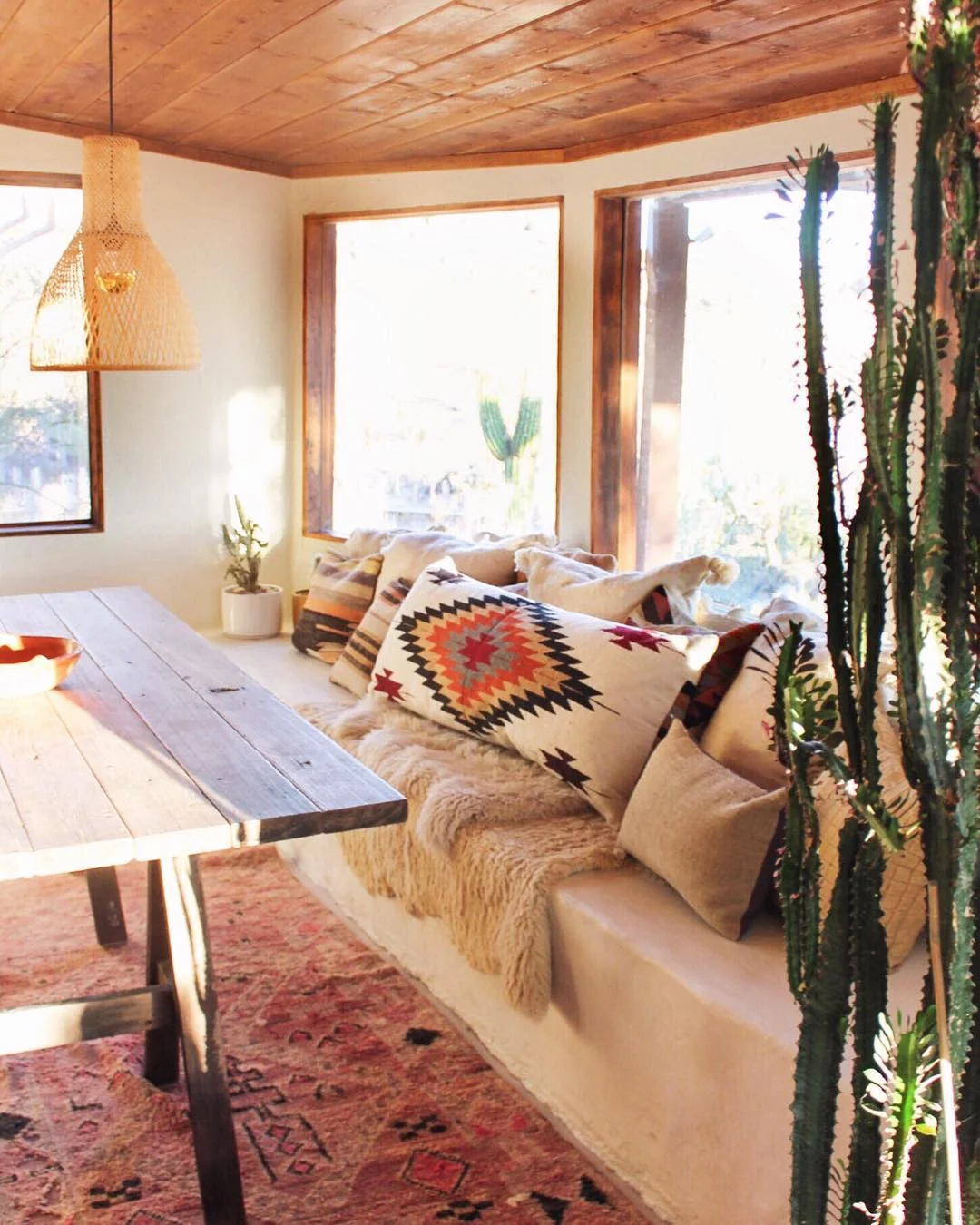 I love this nook because it just feels so homey! The pillows give it such a cozy feel, and that woven pendant light is amaze. I'm planning on buying a woven pendant light too and dropping it over the table like these home owners did.