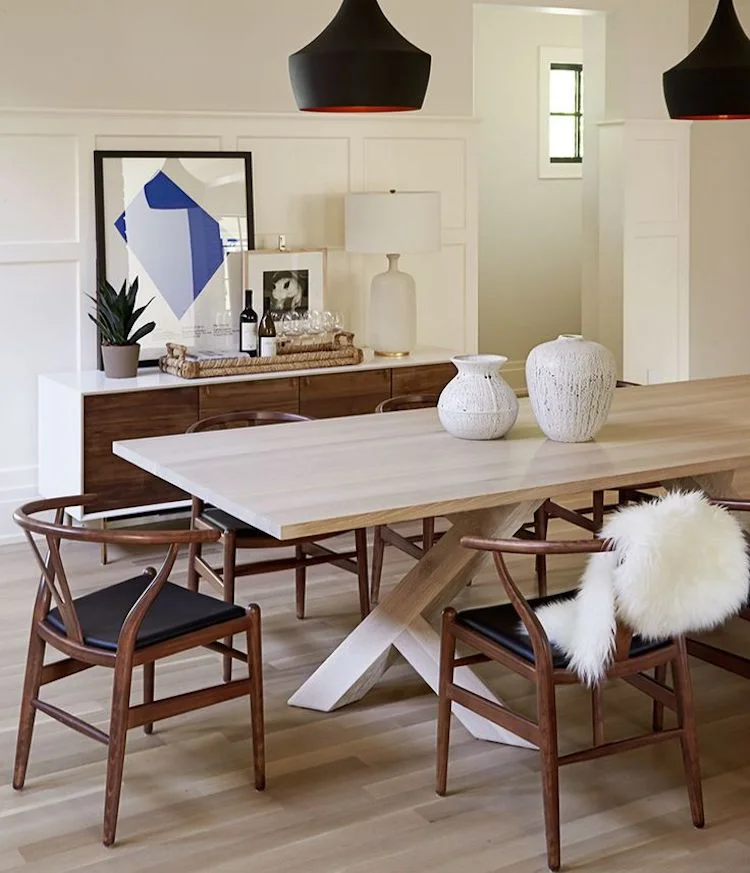 One of the things I was most excited about when we moved into our new house was having our own dining room. At our old apartment we ended up selling our dining room furniture and turning that space into Eddie's desk area/the entryway. Truth is, we hardly ever used the space when it was a dining room- and when you're living in 700 square feet you really need to utilize every inch available. We ate almost all our meals in the living room or at the kitchen brekky bar - the dining table just felt too formal for Eddie and I! But now that we're a little older, I've been thinking about how fun it would be to have a proper dining room. I'd love to have our friends over for brunches & dinner parties! (Not that being table-less stopped us from that before - don't forget about our annual Friendsgivings on the floor hehe) I'm pretty sure Eddie and I will still eat most of our dinners together at the coffee table watching TV, but I am super excited to design our new offish dining area. I wanted to share some gorge rooms that have been giving me major inspo, and also tell you my plan for the space. Keep scrolling for my product mood board at the bottom!
